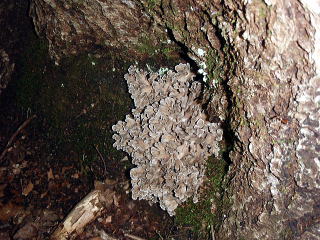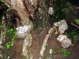 湧水を飲んでいた時に偶然頭上のマイタケを見つけたのを