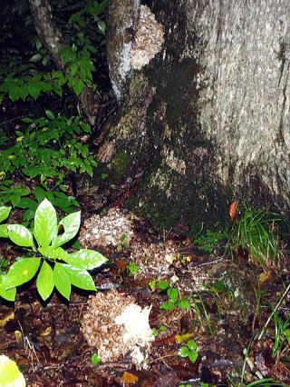 ミズナラの根元に点々と