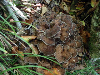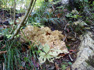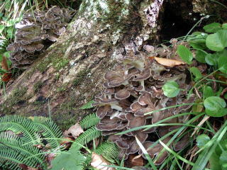 以前貼りつけた画像の古木に、久しびりに舞茸が生えていました。