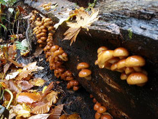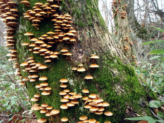 程なく着き眺めると、いかにもうまそうなナメコが倒木の幹の