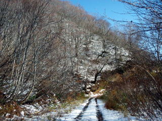 林道沿いの周辺には薄っすらと雪が積もっていて、自分が