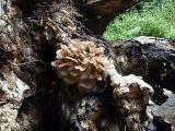 やって来ました・・・案の定、2本のうちの1本に舞茸が数株でて