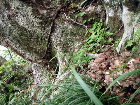 根の穴にシロフマイタケ