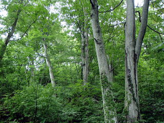 このブナの木の根元に、この上の遅過ぎのトビタケが生えていた