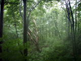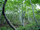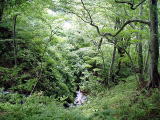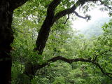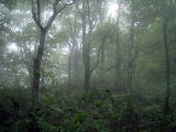 早朝、原生の森へ入り込み、雨で濡れた草木をかき分けながら
