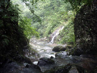 雨の大沢川をさかのぼって行くと、ネスギ沢を越えた辺りで、