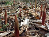 太くて赤いタケノコの姿があまり見られなくなってしまった。懸命に探し廻って幾らか集めたものの、