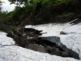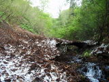 濁沢に積もった雪も解けだし、黒い道となっていた雪の橋も落ちて、沢を渡り始めた。