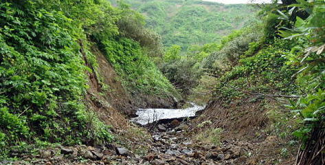 一か所めの水の補給場があるここまで、上の中継地からタケノコを下ろす係りは、主に女の人の役目で、