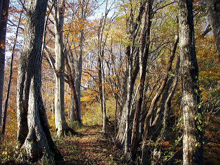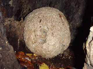 途中、ブナの大木の穴に何か見えたので覗くと、スズメバチの巣
