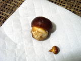 前日誰かが入った後か、ナメコがハサミかナイフで