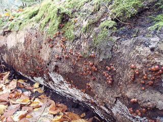 10/28の日に撮影した上の画像の粒ナメコが↗ 6日目でこんな状態になっていた