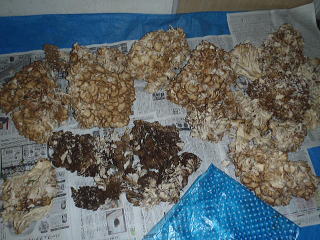すぐに舞茸を外し手にすると、開き過ぎと乾燥のし過ぎで、