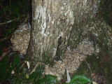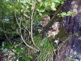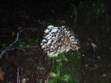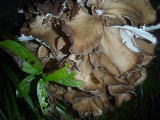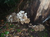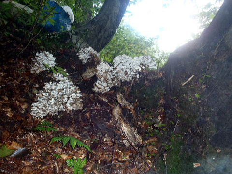 最初の木を覗くと、小ぶりのクロフ舞茸が一株顔を見せてくれた