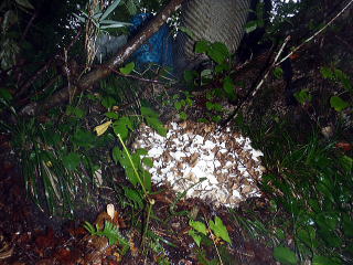 よう穴を開けたビニール袋で包みこみコンテナに空ける。