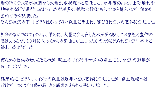 しかし前と重複するが、ことしの晩秋キノコは大不作と
