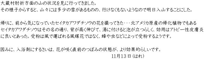 周囲の木の葉や草花もすっかり消え、山中は早々と冬支度を終えたようだ