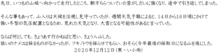 今年度の「2020茸採り」は本日でもって終わらせていただきます。