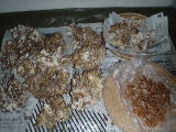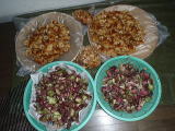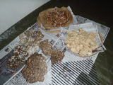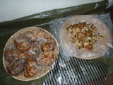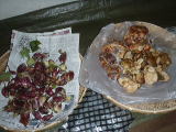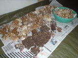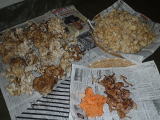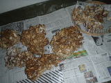 きょう採ったフキノトウ(左)とムキタケ&ナメコ