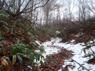 寒々とした木々の狭間に、青々とした杉の葉だけが目に映る