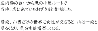 宿泊した滝の小屋内にて