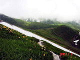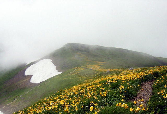 山道周辺に咲き綻ぶニッコウキスゲの大群落には、大自然のパワーをもらった