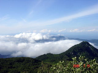 以東岳から下方を眺めると、うっすらと大鳥池が浮かんでいた