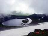 カルデラの鳥海湖(海抜1590m)その大きさは(直径20m)(水深4m)とあった