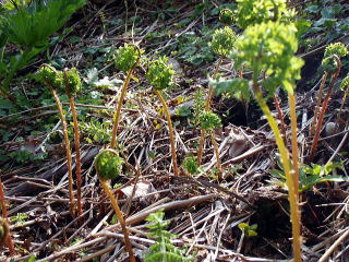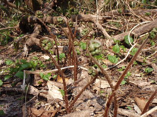 アカコゴミ(キヨタキシダ・一本コゴミ・赤コゴミ) 【自生地】 北海道〜九州に分布する多年草 イワデンダ科・夏緑シダ 沢筋 草原 日蔭の山地 【採取期】 春〜初夏 【特徴】 同じ仲間のゼンマイのように 新芽の硬い先端が丸く曲がり2,3日で葉が開く 赤茶色の茎に軟らかい白い毛が生えている 一株に数本生えるコゴミと違い アカコゴミは単一に生える 【料理】 指で摘める軟らかい新芽を用いる 油炒め 汁の実 お浸し 【保存】 塩漬け さっと茹で冷凍または乾燥 メモ アクがなく、癖がないアカコゴミは 本元のコゴミより数段美味しいと言われる 数の少なさもあり、連日大量に収穫するには容易でない |