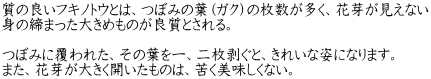 メモ フキは細めの青ブキ(ミズブキ)を採る