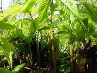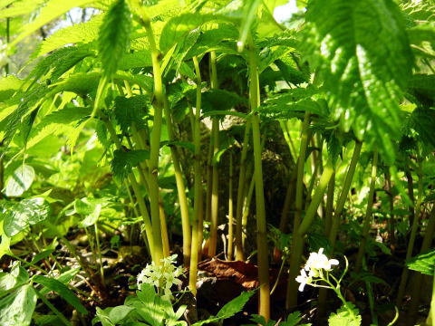 ミズたたき・・・包丁の柄で茹でたミズをたたく(ヌメリがでて美味しい) |